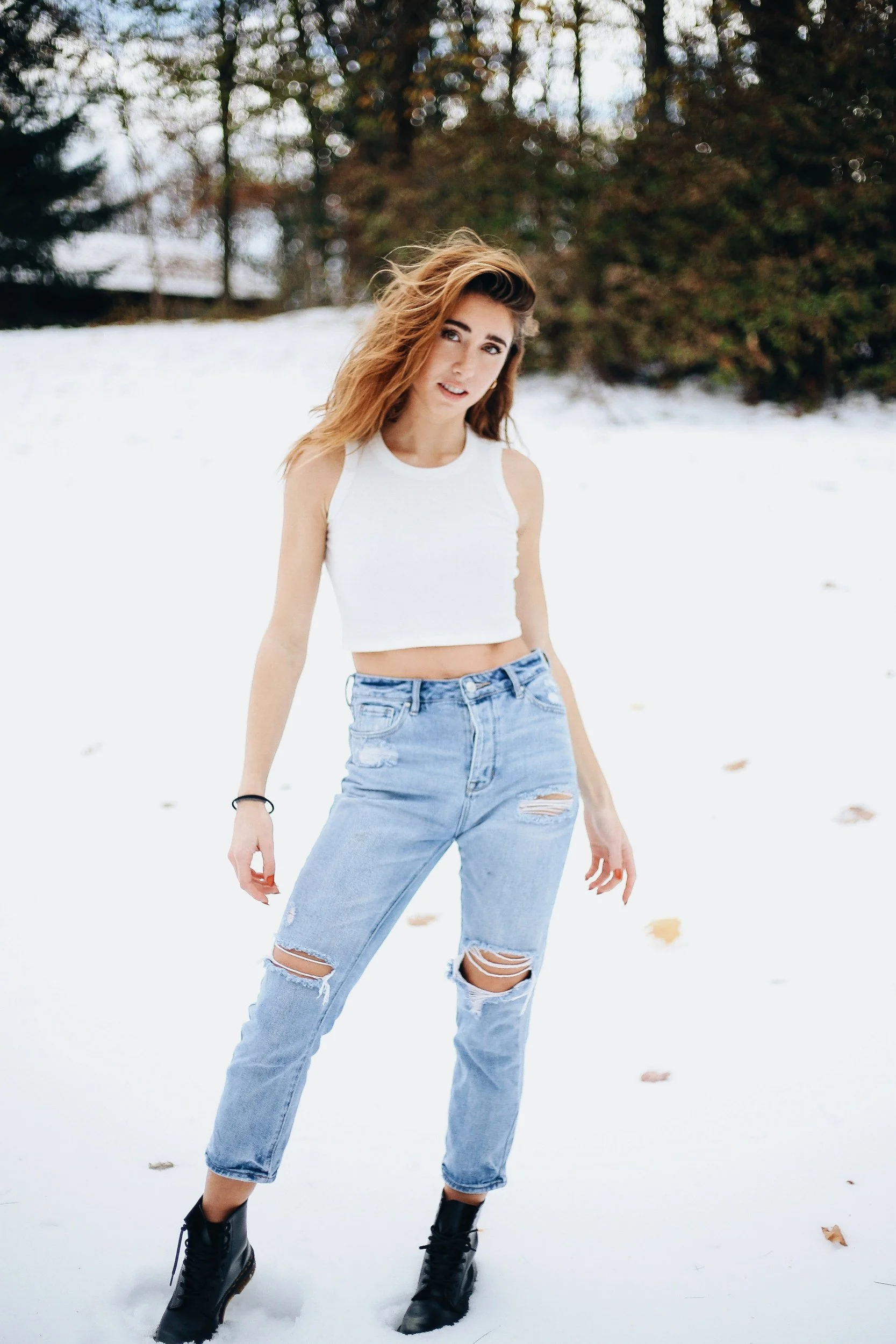 With cropped denim and a fitted long-sleeve top for casual plans.